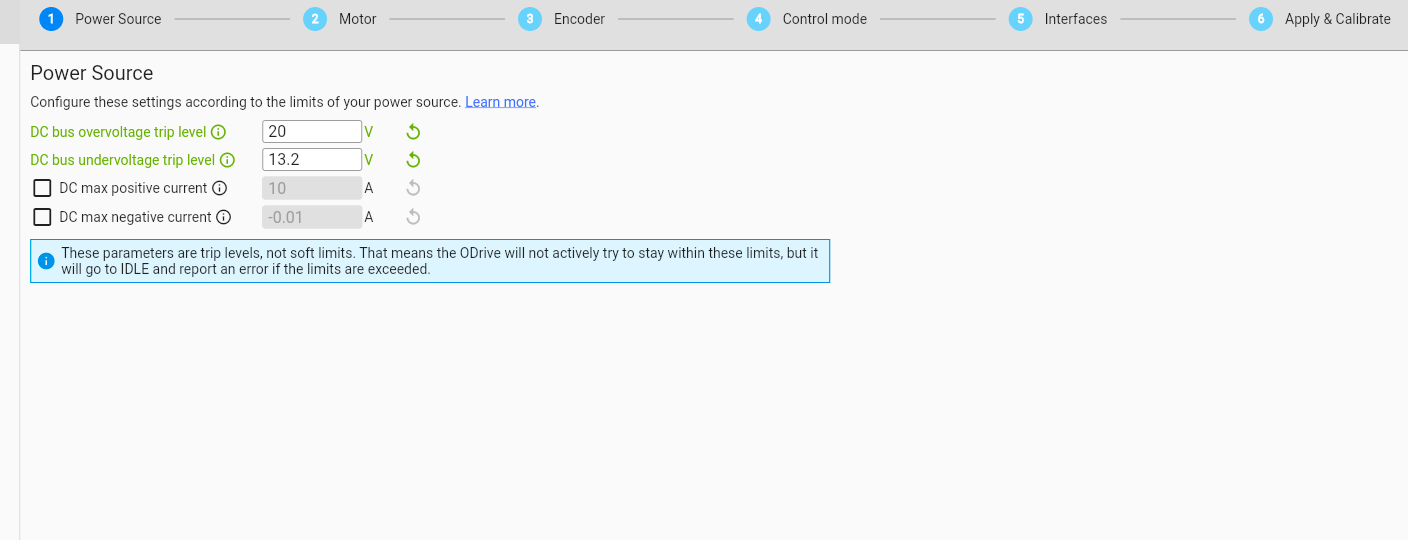 // 1. If there is an error condition, such as missing DC power, the ODrive might