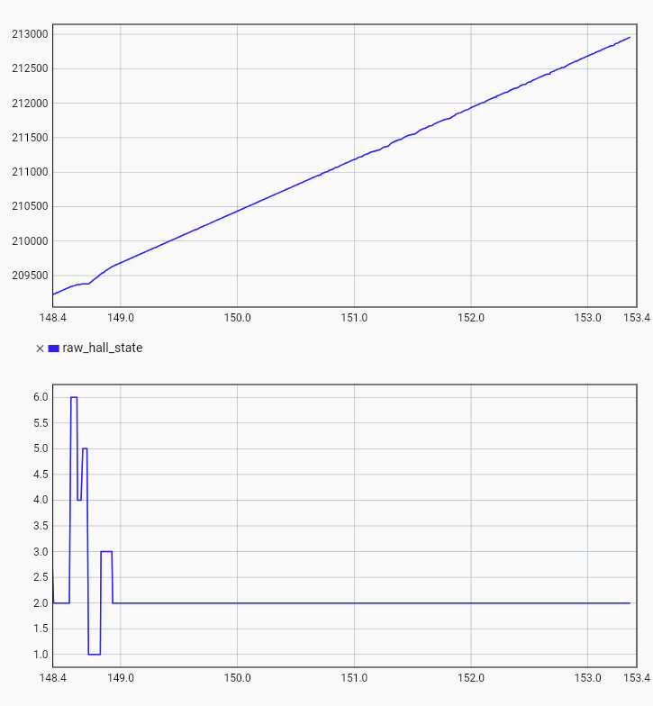 Hi @dobFHR01 (and @awkeller ) – I think we found a temporary workaround for this bug, until we can implement and merge a full fix. Try increasing the stated number of pole pairs, e.g. by a factor of 10. Your position and velocity estimates will be 1/10th of actual, but it should resolve this bug.